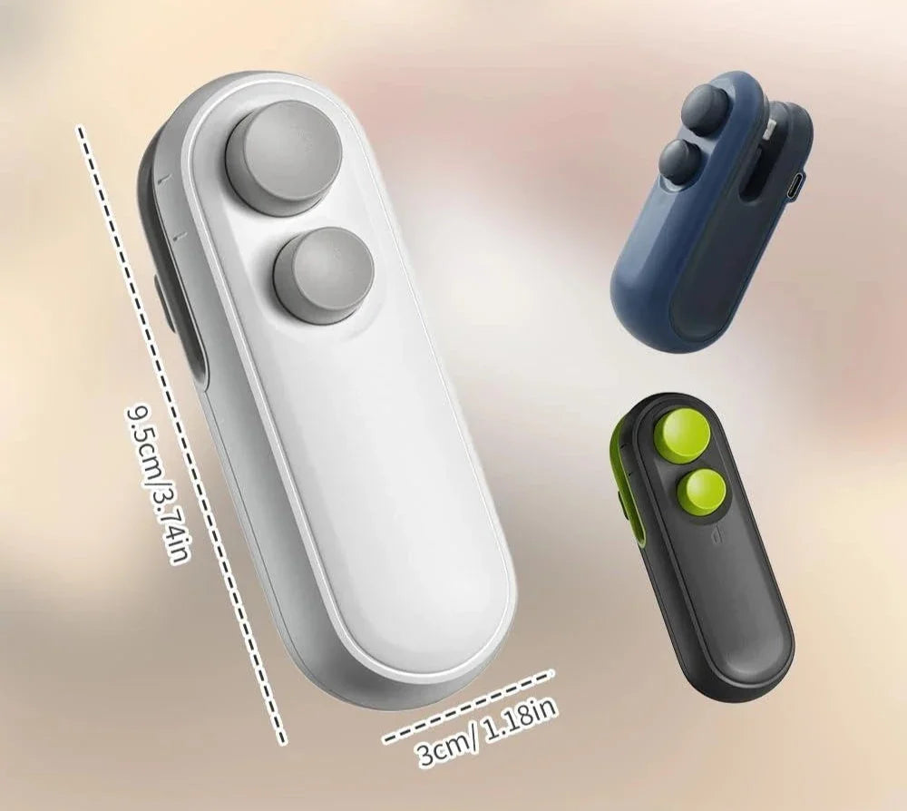 Este Mini Selador de Sacos é a ferramenta ideal para selar e cortar sacos plásticos com praticidade e eficiência. Compacto e fácil de usar, ele conta com entrada USB-C para carregamento rápido, eliminando a necessidade de baterias e facilitando o uso com o mesmo cabo de outros dispositivos.